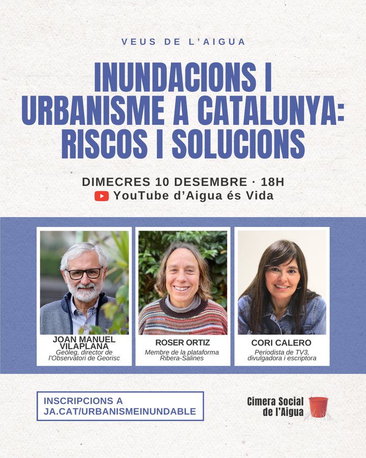 Presentarem els principals factors meteorològics i hidrològics que afavoreixen les inundacions al nostre territori, i analitzarem les estratègies de mitigació que cal implementar per reduir-ne els impactes. Finalment, examinarem el cas dels projectes urbanístics en zones inundables, amb especial atenció al cas de Ribera-Salines de Cornellà de Llobregat, com a exemple paradigmàtic dels reptes que afrontem en la gestió del territori.