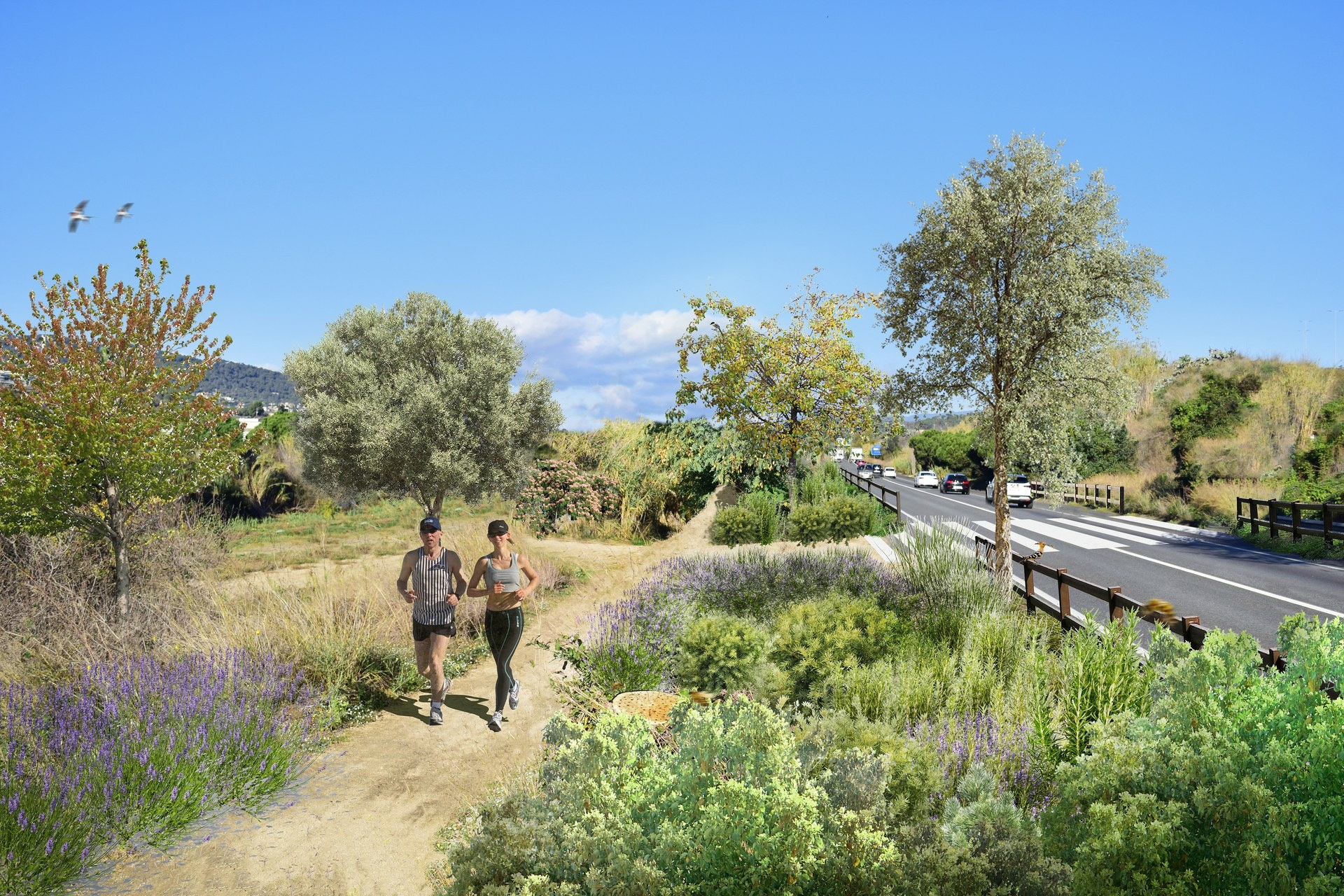 Es preveu la neteja i retirada dels residus existents a l’àmbit, la desbrossada i l’eliminació d’espècies invasores com la canya, entre altres. A les àrees on es retiri la canya i en altres zones amb baixa densitat vegetativa es plantaran arbres i arbustos i es realitzarà una hidrosembra, per aconseguir refugis de fauna i reforçar la pantalla visual i acústica.