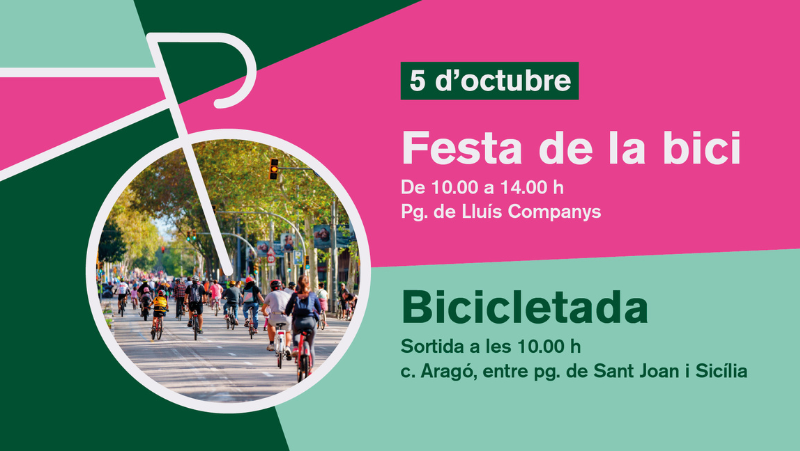 Torna la Festa de la bici i la Bicicletada a Barcelona, una cita imprescindible per gaudir plegats del transport sostenible a dues rodes. Aquest any, la Festa de la bici tindrà lloc al passeig de Lluís Companys, el diumenge 5 d’octubre, de 10.00 a 14.00 h, amb activitats per a petits i grans, música, tallers, fira d’entitats i moltes ganes d’avançar cap a una mobilitat més sostenible.