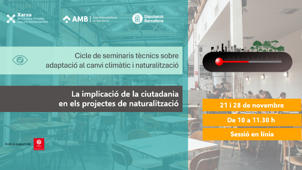Continuem el cicle de seminaris tècnics oberts als ens locals membres de la Xarxa i la resta d’administracions públiques, i també al públic interessat del sector. El cicle de seminaris tècnics és una activitat del Grup de treball d’adaptació i naturalització de la Xarxa i està coorganitzada per la Diputació de Barcelona, la Xarxa de Ciutats i Pobles cap a la Sostenibilitat i l’Àrea Metropolitana de Barcelona.