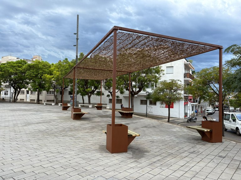 L’Ajuntament de Sitges ha instal·lat una nova pèrgola a la plaça Catalunya amb l’objectiu de generar un nou espai d’ombra al municipi que millori el confort i l’ús d’aquest punt. La iniciativa respon a la voluntat de donar resposta a les necessitats detectades al llarg de l’any i, especialment, durant els mesos d’estiu, quan les altes temperatures redueixen l’aprofitament d’aquesta plaça. Aquesta és una actuació transversal entre les regidories de Sostenibilitat i d’Imatge i Via Pública orientada per a incrementar els espais d’ombra, ampliar les zones verdes i incorporar solucions urbanes que afavoreixin la resiliència climàtica.