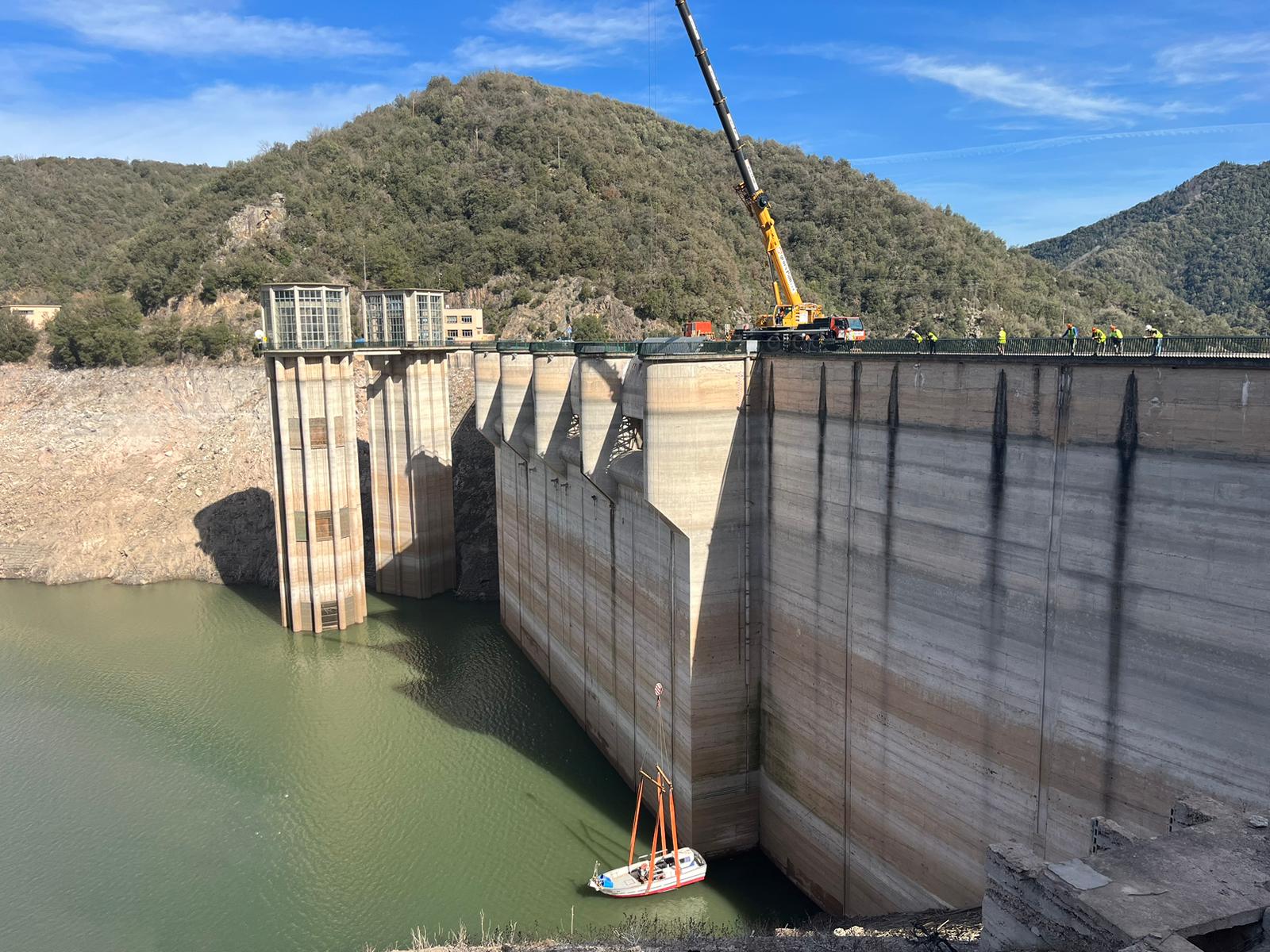 Una grua ha baixat fins al nivell de l’aigua tres embarcacions de pesca que seran les encarregades de capturar tota la fauna que quedi encara al pantà. Es calcula que a l’embassament hi ha entre 40 i 60 tones de peixos. Entre ells, n’hi ha de nou espècies considerades invasores i una d’autòctona a la qual de tota manera no li pertocaria viure en aquest indret.