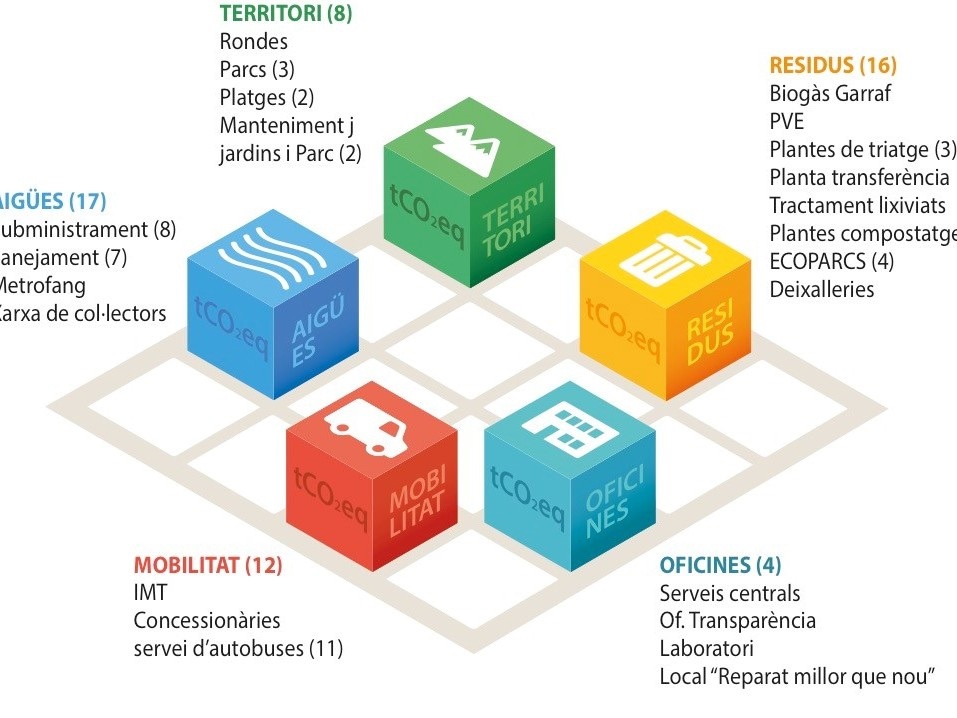 Dins d'aquesta disminució global, alguns sectors d'activitat de l'AMB (i les seves empreses vinculades) han presentat un descens de les emissions especialment acusat: pel que fa a la mobilitat, han disminuït en un 22% de les emissions per passatger entre 2011-2017, gràcies a la renovació de vehicles per altres de més sostenibles, el desplegament per a la infraestructura per al vehicle elèctric i els criteris marcats pel Pla metropolità de mobilitat urbana. Pel que fa al cicle integral de l'aigua, en subministrament les emissions han baixat un 63% per m3, mentre que en sanejament el descens ha estat del 42% per m3 d'aigua tractada. Actualment, el 100% de l'electricitat consumida a les EDAR és d'origen renovable, fet que ha comportat una baixada significativa de les emissions.