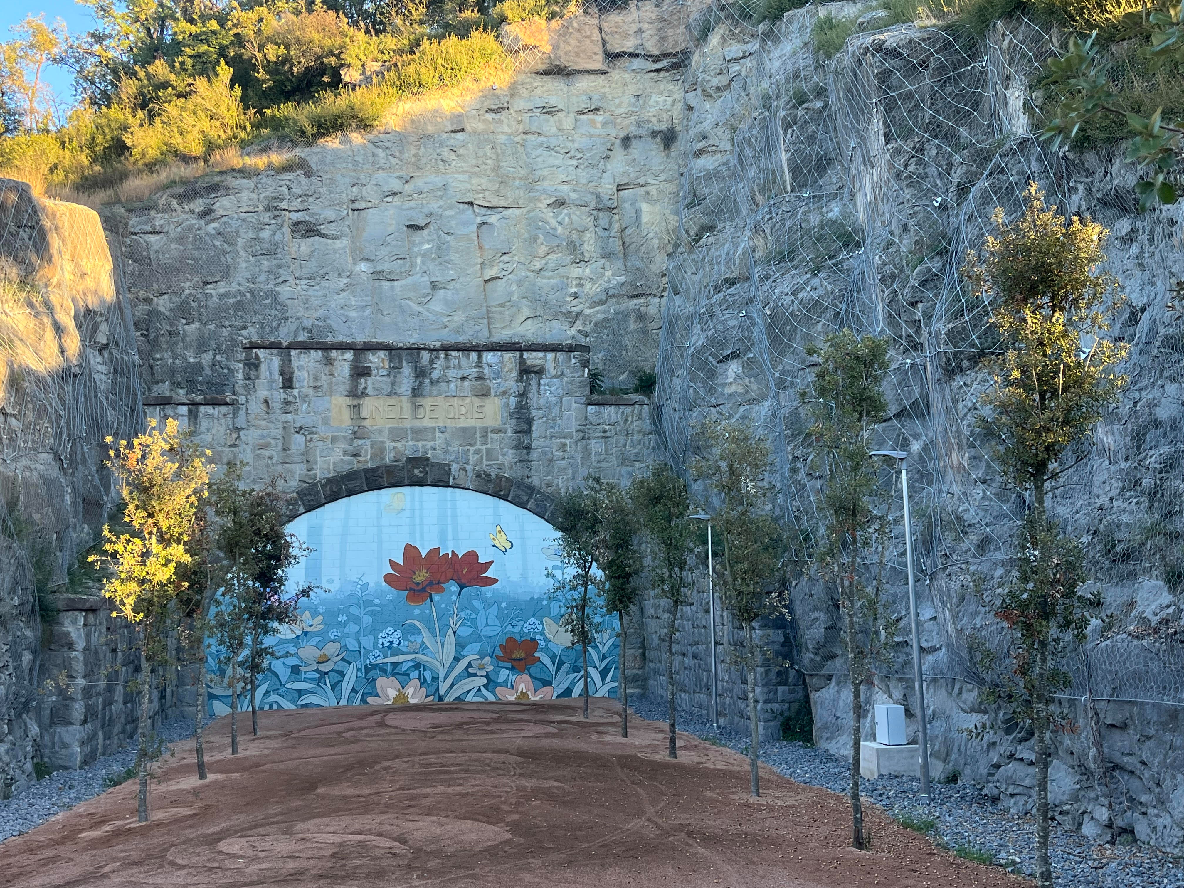 Tot plegat s’ha combinat amb l’art urbà com a colofó: s’ha pintat un grafit a la boca de l’antic túnel tapiat que ara condueix a un bosc amb flors i papallones. És obra de Joan Poch, d’Orís.  Més enllà de la transformació de l’espai l’alcalde del municipi, Arnau Basco, insisteix que es vol fer servir com a un lloc “de promoció de la salut”.  D’aquesta manera en el marc de les activitats que organitza l’Ajuntament cada temporada, se n’hi volen portar a terme i programar més de cara el curs vinent, com trobades o entrenaments.