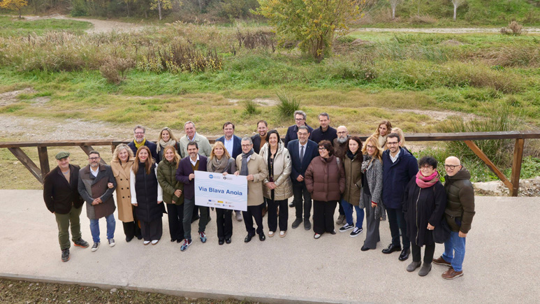 La presidenta de la Diputació de Barcelona, Lluïsa Moret, ha inaugurat la Fase 1 de la Via Blava Anoia, un tram de 19 quilòmetres que connecta els municipis de Jorba, Santa Margarida de Montbui, Igualada, Vilanova del Camí i la Pobla de Claramunt, tot resseguint el curs del riu. Aquest és el primer pas completat del projecte Vies Blaves Barcelona, que un cop acabat permetrà recórrer més de 250 quilòmetres, a peu o en bicicleta, resseguint la llera del Llobregat i els afluents de l’Anoia i el Cardener.