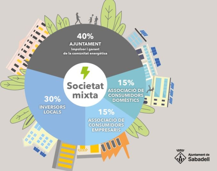Finalment, es podrà participar com a consumidor o consumidora d’energia renovable. En aquest cas, les persones s’integraran a través d’una associació de consumidors i les empreses, a través d’una associació empresarial. Aquesta fórmula facilitarà que qualsevol ciutadà o negoci, independentment de si pot instal·lar plaques o no, pugui accedir a energia neta i local generada a Sabadell.