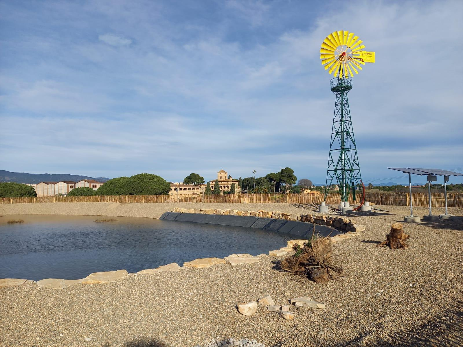 El projecte engloba la creació d’un espai artificial naturalitzat d’aigua, compost per un curs d’aigua de flux lent i tres basses, dissenyat per afavorir la biodiversitat i configurar un conjunt que faciliti l’apropament de la ciutadania a la natura, gràcies a la instal·lació d’un mirador elevat i de diversos punts d’aguait.
