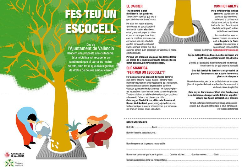 Els veïns podran fer-se càrrec, a partir d’ara, d’un escocell del seu carrer (o d’un carrer pròxim). Hi podran plantar matolls i sembrar flors i mantindre’l juntament amb treballadors de l’Ajuntament. Els tècnics municipals donaran consells experts sobre com cal actuar, quines són les ferramentes i les llavors o plantes necessàries i com tindre cura de les plantes. A més, la regidoria posarà a l’abast un telèfon per si es detecta algun problema a l’escocell, l’arbre o les plantes que hi ha.