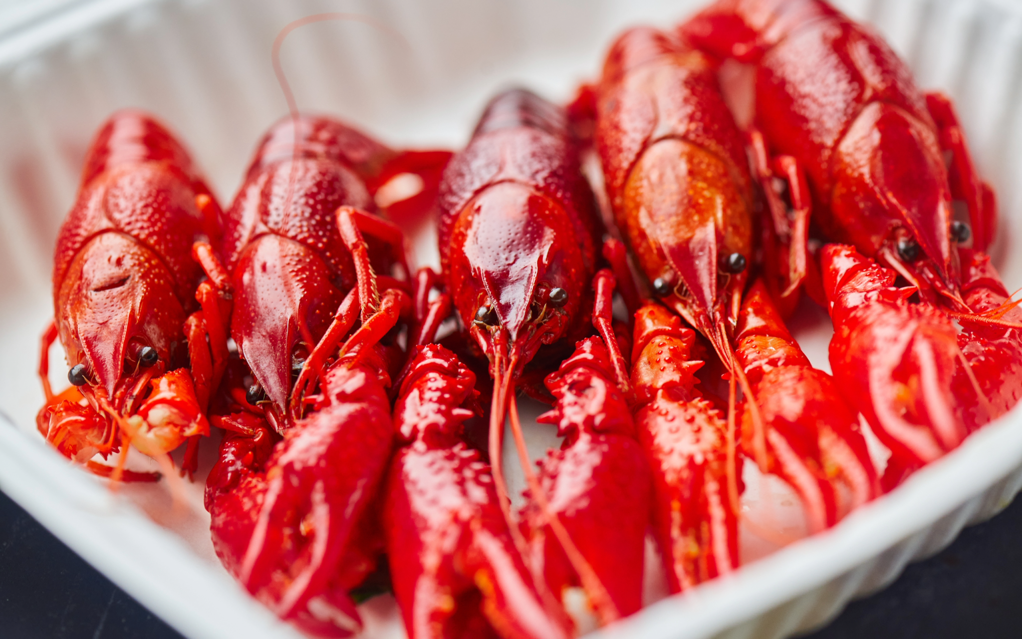 Cranc vermell americà, una espècie invasora a Catalunya, en safata a punt per menjar.